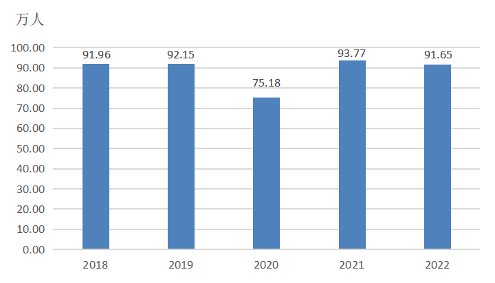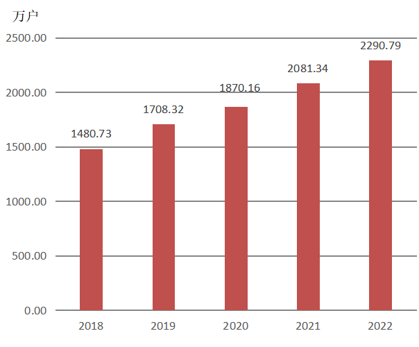 图8 2018-2022年全省年末固定互联网宽带接入用户数