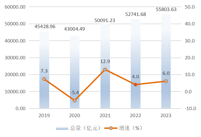 图1 2019-2023年全省生产总值及其增速