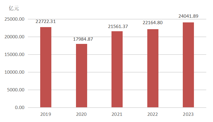 图5 2019-2023年湖北省社会消费品零售总额