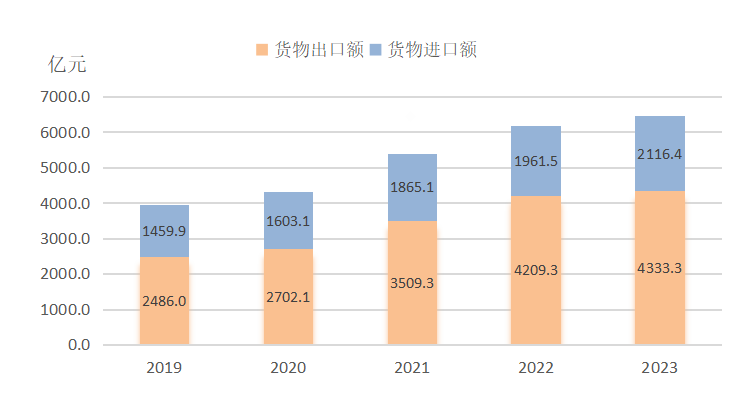 图6 2019-2023年全省货物进出口总额