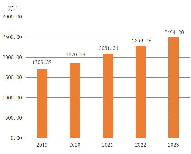 图8 2019-2023年全省年末固定互联网宽带接入用户数