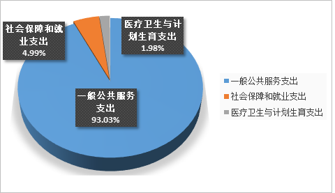 2018年财政拨款支出16404.18万元,主要用于以下方面:一般公共服务(类)支出15260.83万元,占总支出的93.03%;社会保障和就业(类)支出818.95万元,占总支出的4.99%;医疗卫生与计划生育(类)支出324.40万元,占总支出的1.98%。