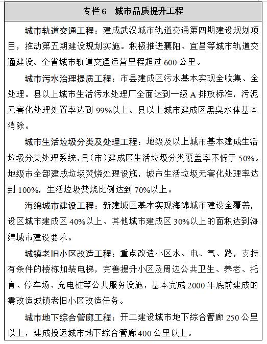 城乡区域发展更加协调。中心城市和城市群带动作用逐步增强,武汉市获批建设国家中心城市,武汉城市圈一体化进程加快。市州竞相发展,襄阳、宜昌加快建设省域副中心城市。城镇化质量不断提高,常住人口城镇化率达到59%。县域经济加快发展,全国县域综合发展百强县(市)增加到7个。乡村振兴战略大力推进,美丽乡村建设进展加快,城乡融合发展稳步推进。