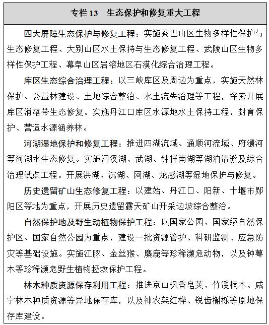 生态环境加快改善。长江大保护“双十工程”和“四个三”重大生态工程扎实推进,污染防治攻坚战和“绿满荆楚”行动取得明显成效,全省国考断面水质优良比例提高到91.2%,13个国考城市PM2.5平均浓度比2015年下降40.3%,全省森林覆盖率提高到42%。资源利用更加高效,单位生产总值能耗比2015年下降18%。实现河(湖)长制全覆盖,神农架国家公园体制试点顺利推进,丹江口库区一库清水持续北送。