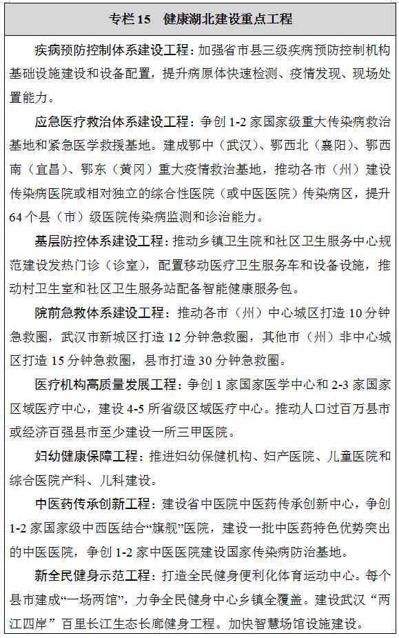 建立统一高效的应急指挥体系,完善应急指挥协调联动机制,按照“统一指挥、分级负责”的原则,明晰职责边界和责权界线。完善应急预案体系,加强应急预案评估、演练和动态管理。建立常态化的应急资源普查机制,健全预警信息统一发布制度,建设综合风险监测预警中心及人工智能计算中心,实现安全风险有效监测、及时预警。完善应急基础设施,增强航空应急救援能力,建设国家华中区域应急物资供应链中心及集配中心、国家华中区域应急救援中心和鄂东南、鄂西北、鄂西南等省级应急救援基地。实施应急装备现代化计划,推进应急装备高端化、智能化、标准化、系列化、成套化发展。加强应急管理学科建设,培养一批专业救援队伍,建立综合性救援力量与地方专业队伍、社会救援力量、驻鄂部队及驻在地武警部队共训共练、合作救援机制。建立健全应急产品和应急服务标准体系,加快培育应急产业,推进随州、赤壁等国家级应急产业示范基地建设,打造应急装备制造特色品牌。